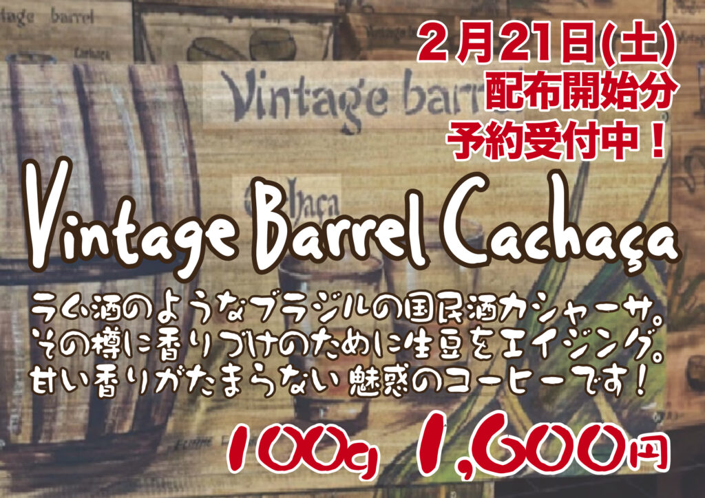 ブラジルの国民酒カシャーサの樽を使用しエイジングしたバレルエイジドコーヒーの予約販売会を開催しますよ。ちょっとでもお求めやすくするために100gの販売です。ご予約いただいた方は、21日(土)より受け取り可能です。