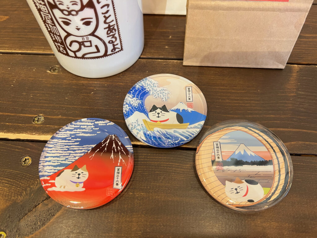 にゃん小物は【浮世絵アクリルマグネット】。直径66mmで意外とデカくて存在感あり(笑顔。初売り当日は先着順で3種類の中からお好きなものひとつ選んでいただけます。